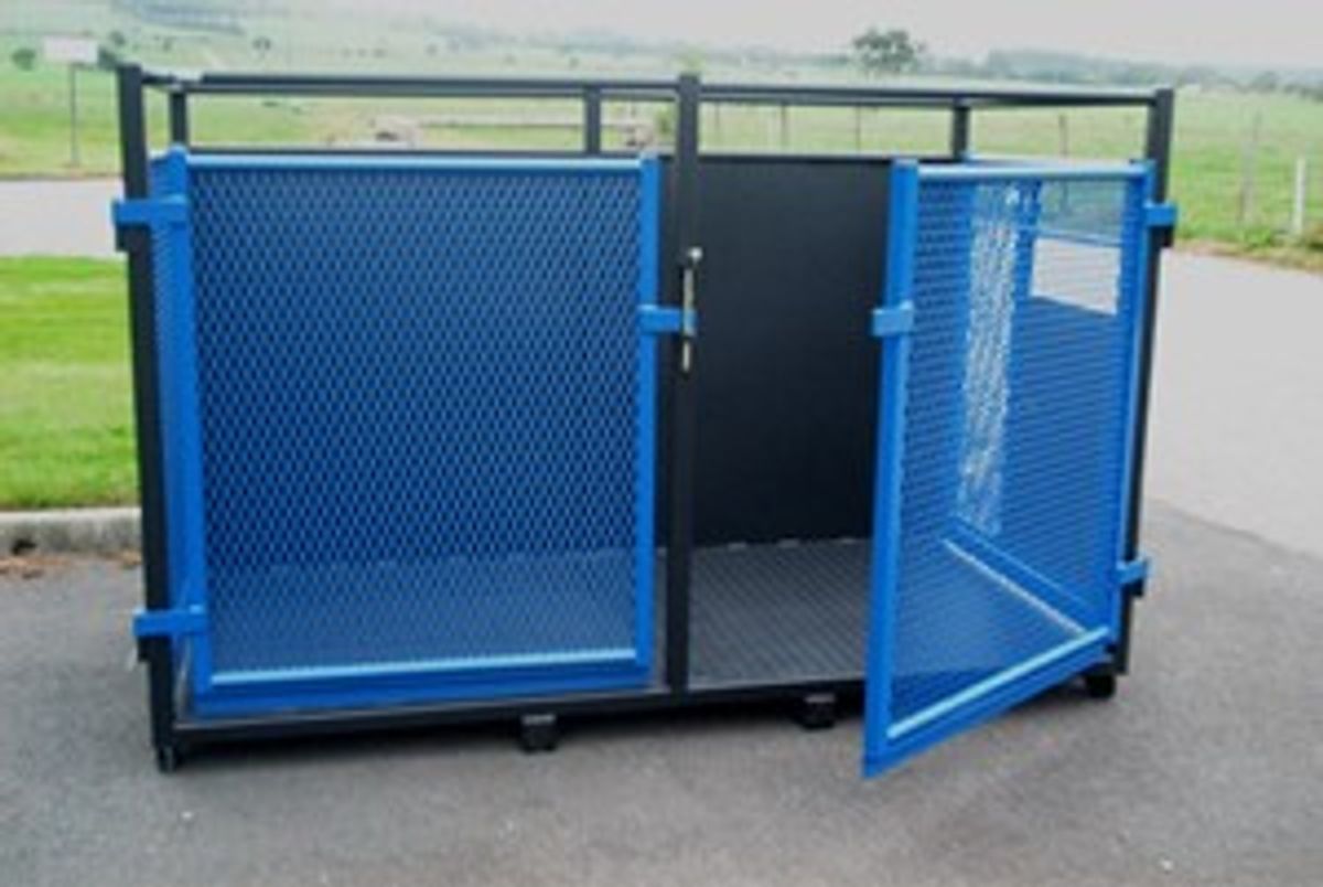 Tegle transportkasse er velegnet til både transport, fanging og fôring av dyr. Transportkassen har dobbel port i langside, og leveres med strekkmetall sider.